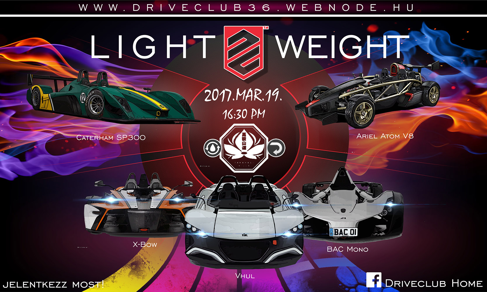 Járművek: Super kategória Könnyűsúlyú autói. (BAC Momo, Vhul, X-Bow, Caterham SP300, Ariel Atom V8) Megkötések: Mindegyik autó csak egyszer választható játékosonként.